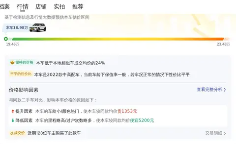 综上所述的新车含税价、用车成本、市场行情、优势分析、同款比价等数据仅供参考。在配置部分,因为二手车非标品,车辆可能会存在配置改装的情况,具体车况信息需要线下结合车辆实际情况进行综合参考。