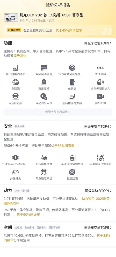 综上所述的新车含税价、用车成本、市场行情、优势分析、同款比价等数据仅供参考。在配置部分,因为二手车非标品,车辆可能会存在配置改装的情况,具体车况信息需要线下结合车辆实际情况进行综合参考。