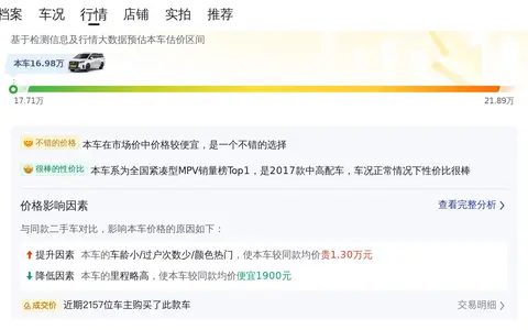 根据懂车帝的大数据分析,这辆车的二手车报价比较低,因为它的市场行情价是17.71万-21.89万,而该车的报价则是16.98万,所以从价格上看,这辆车还是有一定优势的。