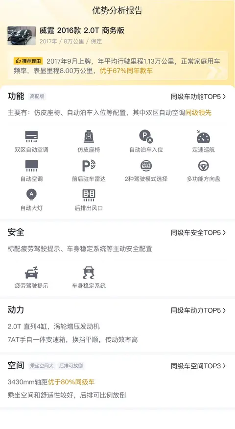 综上所述的新车含税价、用车成本、市场行情、优势分析、同款比价等数据仅供参考。在配置部分,因为二手车非标品,车辆可能会存在配置改装的情况,具体车况信息需要线下结合车辆实际情况进行综合参考。