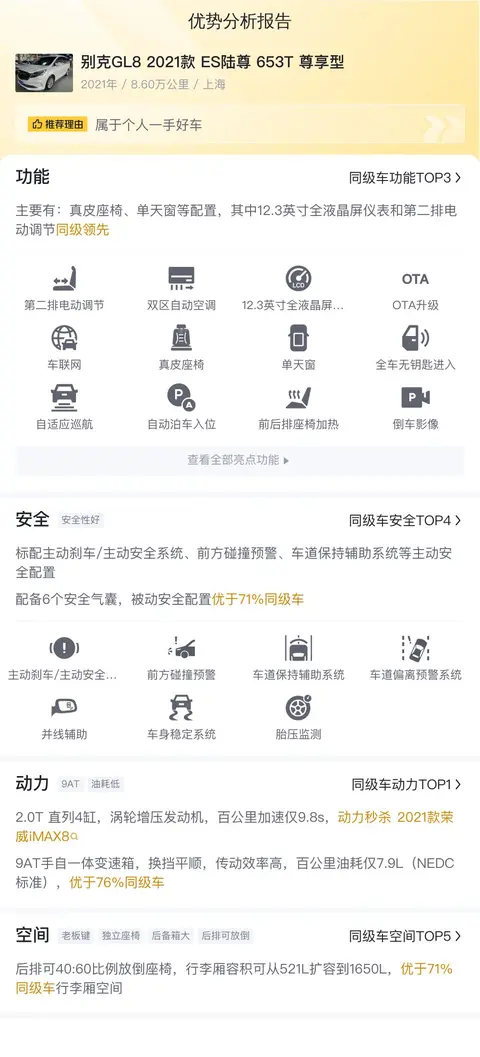 综上所述的新车含税价、用车成本、市场行情、优势分析、同款比价等数据仅供参考。在配置部分,因为二手车非标品,车辆可能会存在配置改装的情况,具体车况信息需要线下结合车辆实际情况进行综合参考。