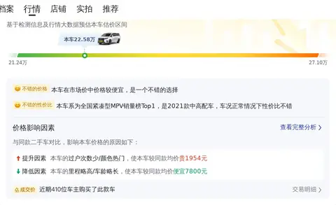 在二手车市场,别克GL8 2021款 ES陆尊 653T 舒适型的售价在21.24万-27.10万之间,具体售价要看车辆的状况。这台车的售价22.58万,本车低于车况相似的同款车型,是一个不错的选择。