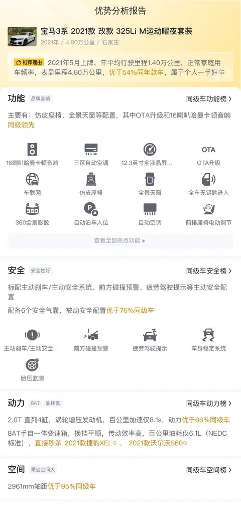 宝马3系(图片|配置|询价)2021款改款325Li M运动曜夜套装,车源地石家庄,上牌时间2021年5月,过户次数0次,表显里程4.8万公里,新车指导价36.59万,二手车报价21.98万。今天,我们就来详细了解一下这款二手车。