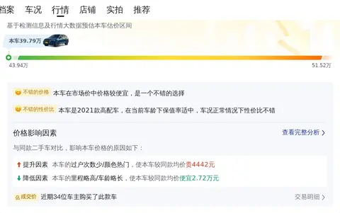 综上所述的新车含税价、用车成本、市场行情、优势分析、同款比价等数据仅供参考。在配置部分,因为二手车非标品,车辆可能会存在配置改装的情况,具体车况信息需要线下结合车辆实际情况进行综合参考。