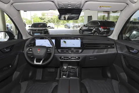 红旗HS5的内饰以传统布局为主,前排功能区域整洁有序,易于操作。标配的双12.3英寸连体显示屏、皮质方向盘以及HUD抬头显示功能都提升了车辆的科技感。全景天窗、皮革和翻毛皮材质的座椅更增添了豪华感,同时也兼顾了乘坐的舒适性。