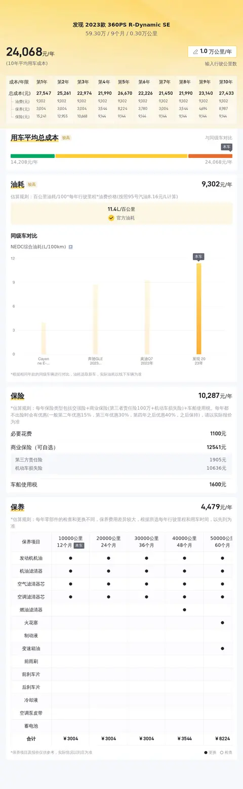当前市场上,发现 2023 款 360PS R-Dynamic SE 的二手车行情大致在 49.33 万元到 59.33 万元之间。具体售价因车辆状况、里程数、所在地等因素而异。就用车成本而言,该车型官方给出的百公里油耗为 11.4L,但实际油耗可能受驾驶习惯、路况等多种因素影响而有所不同。基于当前油价和保险费用预估,年均综合用车成本约为 2.4 万元左右。这里需要注意的是,实际用车成本可能会因多种因素而有所变动。