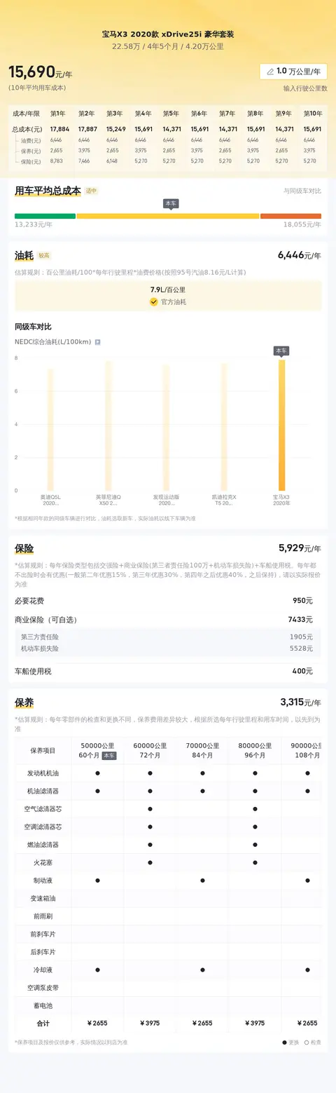 平均用车成本约为15707元/年,但实际支出视使用强度、保养状况及地区生活成本而定。购车时请全面考虑长期持有成本,包括油费、保险费、保养费及可能的维修费用。建议车主定期保养车辆,合理规划用车频率和路线,以降低油耗和磨损;同时,选择合适的保险方案和维修服务供应商也可以有效降低用车成本。