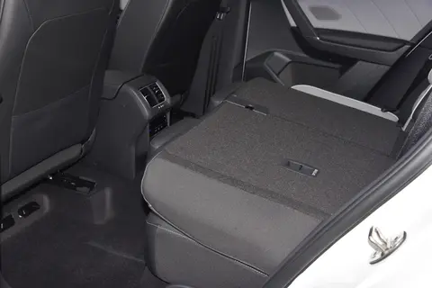 座椅采用了仿皮材质包裹,在细节处加入了缝线处理,内部的填充物较为柔软,触感柔和富有弹性,乘坐起来宽大厚实,对腿部和背部均有着良好的支撑,长时间乘坐也不会感到疲劳。前排座椅支持电动调节,后排座椅支持40:20:40比例放倒,空间的灵活性还是相当丰富的,像日常搬运一些较长的物品,可以根据需求放倒一部分后排座椅;而全部放倒后后备厢可从506L的常规容积拓展至1590L,进行户外活动时装载自行车也是没有问题的。身高171cm坐在后排头部空间为一拳半,腿部空间为三拳半,空间性还是相对充裕的;不过中央地台伴有着明显的凸起,满员乘坐下对于后排中央乘客或许会有些拘束;还配备了独立的空调出风口和2个充电口。