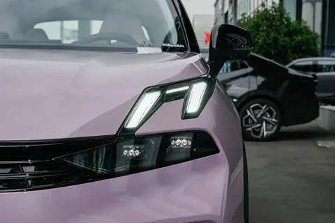 我们本期介绍的这款车型采用黑色+落樱粉配色,显得年轻有活力,同时放在城市家用场景看来,又不会显得违和,搭配爪形日行灯、梯形下包围、花瓣轮毂等元素塑造出的机甲形象,整体辨识度也得以提升。此外,相比新能源纯电汽车,新款领克06 EM-P并未完全阉割发动机,因此该车在车头保留一小段中网,在观感上具有几分燃油气息。