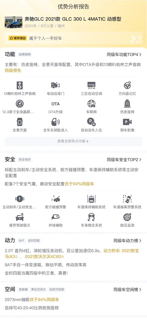 综上所述的新车含税价、用车成本、市场行情、优势分析、同款比价等数据仅供参考。在配置部分,因为二手车非标品,车辆可能会存在配置改装的情况,具体车况信息需要线下结合车辆实际情况进行综合参考。