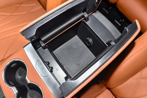 中控岛台是分层式的设计。下方设计了大的空间,提供放包括雨伞等物品。后方配了一个深而且方正的扶手箱。底部还做了防滑处理。扶手箱很能装很实用。前后门板也都留了大的储物槽。车内有足够的收纳空间。