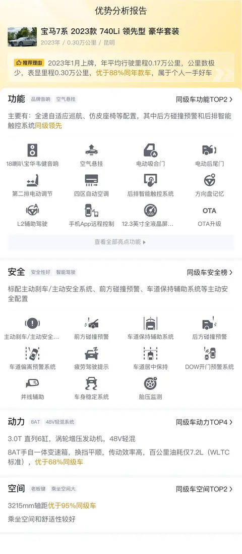综上所述的新车含税价、用车成本、市场行情、优势分析、同款比价等数据仅供参考。在配置部分,因为二手车非标品,车辆可能会存在配置改装的情况,具体车况信息需要线下结合车辆实际情况进行综合参考。