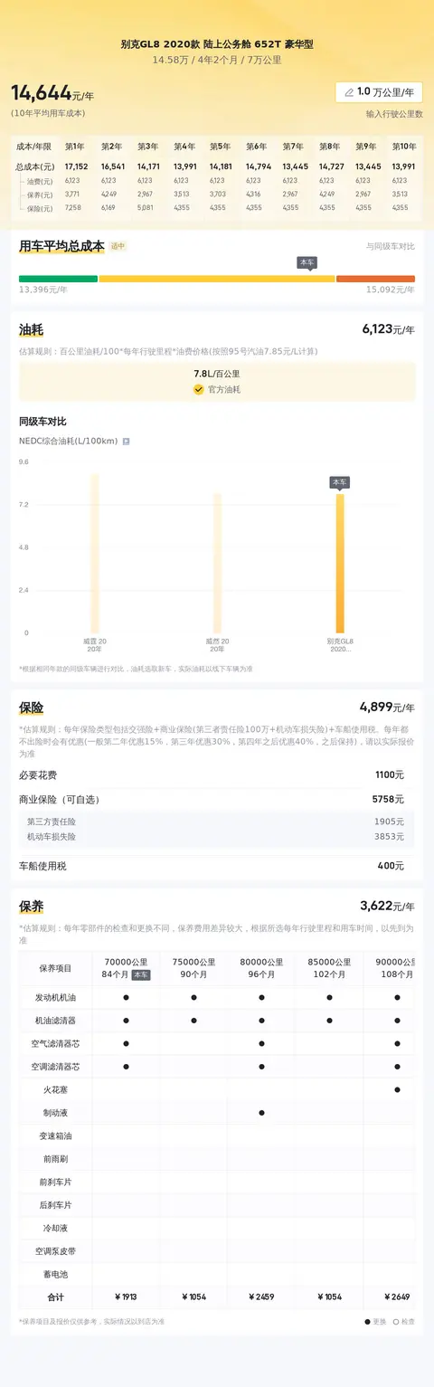 在用车成本方面,根据估算,这辆车的年均综合用车成本约为1.5万元左右。这项费用不包含贷款利息、保险费用和保养费用等花销,具体的金额还需根据车主的实际用车情况而定。