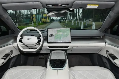 内饰设计主打简洁风格,舍弃了大量实体按键和全液晶仪表,中控台是双层设计,层次分明。主驾驶前方是多功能方向盘,为车主配备了AR-HUD抬头显示,车辆信息也能看的很清楚。扶手台上并没有挡把,采用便捷性更高的电子式怀挡设计。悬浮岛台下面镂空设计,可以放一些女士的包包或者是家具拖鞋。前排给到了手机无线充电板,充电随心所欲。前后排的杯架肯定是少不了的,喝个奶茶什么的方便很多。车内环绕式氛围灯,在夜间的效果会比普通氛围灯强很多。全车给到了16个音响,搭配上天空声道,开启K歌功能后再也不用去KTV了。15.4英寸的中控屏配置丰富,OTA升级、手机互联映射和4G网络等一应俱全。