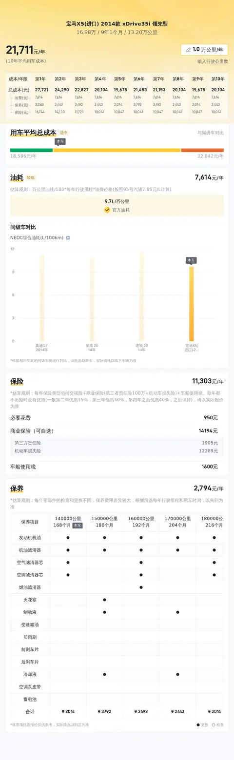 从用车成本来看,这款车的百公里油耗为9.7升,按每年行驶一万公里计算,每年的油费约为8177元。每年的保险费用约为6738元,保养费用约为4177元,年均综合用车成本约19092元。这些成本数据仅供参考,实际费用会根据车主的使用习惯和车况维护情况有所变动。