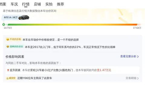 接下来,我们聊聊大家最关心的价格部分。懂车帝基于大数据分析,给出了该车型在二手车市场的预估价格区间,即14.73万至17.64万。这个价格区间为全国市场行情价,而最终的成交价会根据车辆的具体情况,如车龄、里程、保养状况等因素有所不同。当然,也有部分车主会根据自己的车况对价格做出相应的调整。因此,实际成交价还需结合车辆具体情况来看。