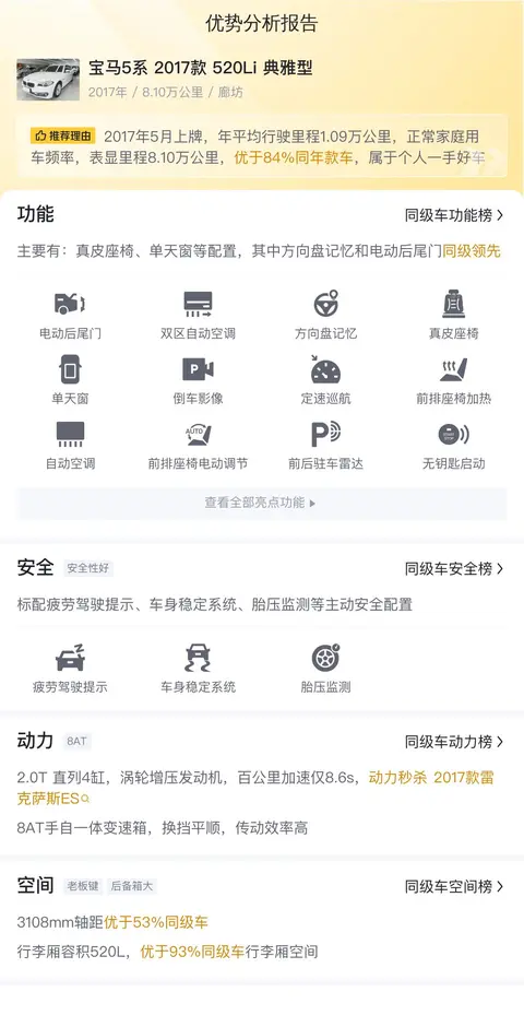 综上所述的新车含税价、用车成本、市场行情、优势分析、同款比价等数据仅供参考。在配置部分,因为二手车非标品,车辆可能会存在配置改装的情况,具体车况信息需要线下结合车辆实际情况进行综合参考。