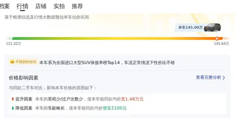 买车可不光看喜欢,还得看市场行情。目前这款2024年款揽胜3.0 L6 400PS盛世加长版7座SUV的二手车行情可是相当的稳健。在全国范围内,这款车的二手车价格大致在121万至145万之间。当然,具体的售价还得看车辆的实际情况、保养程度以及供需关系等多种因素。不过可以肯定的是,这款车因为其豪华配置、强劲性能以及路虎品牌的影响力,在二手车市场上还是相当抢手的。如果您正好在找这么一辆集豪华与实力于一身的SUV,那么不妨把这辆车加入到您的购物车里,仔细比较一番再做决定。