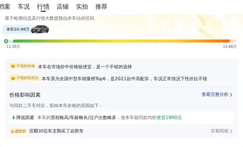 综上所述的新车含税价、用车成本、市场行情、优势分析、同款比价等数据仅供参考。在配置部分,因为二手车非标品,车辆可能会存在配置改装的情况,具体车况信息需要线下结合车辆实际情况进行综合参考。