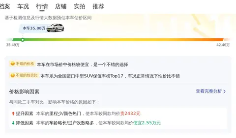 综上所述的新车含税价、用车成本、市场行情、优势分析、同款比价等数据仅供参考。在配置部分,因为二手车非标品,车辆可能会存在配置改装的情况,具体车况信息需要线下结合车辆实际情况进行综合参考。