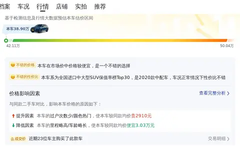 综上所述的新车含税价、用车成本、市场行情、优势分析、同款比价等数据仅供参考。在配置部分,因为二手车非标品,车辆可能会存在配置改装的情况,具体车况信息需要线下结合车辆实际情况进行综合参考。