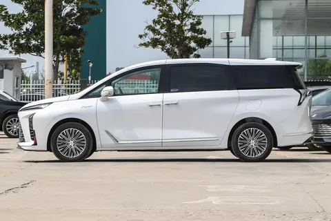 造型设计宽厚沉稳,排列组件也是简单直观的布局形式,更多贴合了传统燃油MPV款式的形象。不过LED大灯设计明显经过纤细化处理,这一细节设计带有些许新能源韵味,设计感较为新奇独特,主要还是利用LED灯管的可塑性支持,早期燃油车型同样可应用,只是随新能源市场发育出现更多创新元素才被开发而已。大灯样式变化,但核心功能性并未受到影响,日间行车灯、自适应远近光、自动大灯设计均为标配身份,行车照明还有良好的自然度支持,掌握视野的效果更优。
