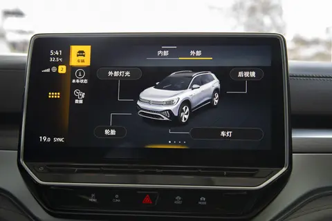 在内饰部分,ID.6 CROZZ的设计较为简洁,传统的燃油车型的设计有很多物理按键,在ID.6 CROZZ上几乎是看不到的,在12英寸触控屏幕下方,配备了五个常用的按键,让老司机更容易上手。再加上HUD台显、车联网、OTA的升级等,能够让这台车有着不错的配置体验。