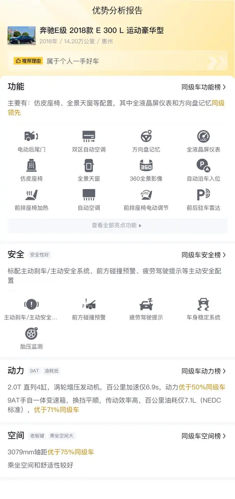 市场行情也是决定这款车价值的重要因素。目前,这款奔驰E级的二手车行情大致在18万至22万之间。用车成本也是每个车主必须考虑的实际情况。根据估算,这辆车的年均综合用车成本在1.6万元左右,当然具体用车成本金额还是根据车辆的实际使用情况而决定的。