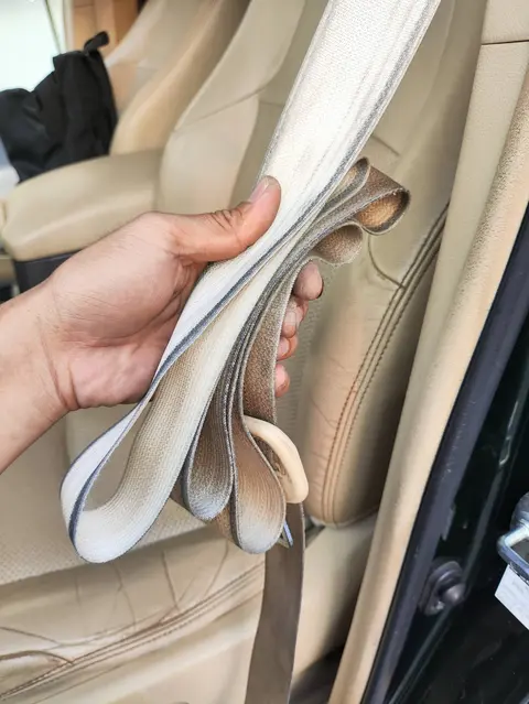 在泡水检测中,安全带有瑕疵,顶棚有脏污。