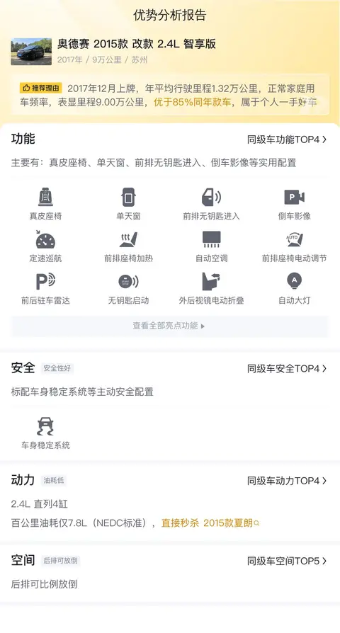 综上所述的新车含税价、用车成本、市场行情、优势分析、同款比价等数据仅供参考。在配置部分,因为二手车非标品,车辆可能会存在配置改装的情况,具体车况信息需要线下结合车辆实际情况进行综合参考。