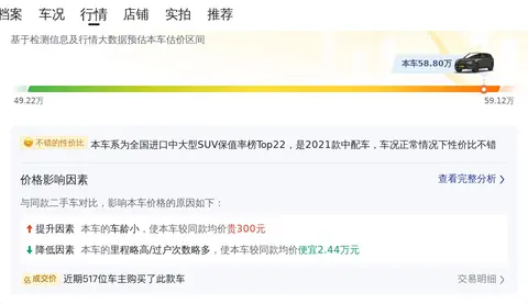 在二手车市场,揽胜运动版 2021款 3.0 L6 耀黑版的行情价是49.22万-59.12万,这辆车的报价是58.80万,报价偏高,不占优势,不过保值率较高,同级车平均是47.07%,它的则是54.72%。