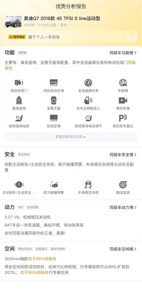 综上所述的新车含税价、用车成本、市场行情、优势分析、同款比价等数据仅供参考。在配置部分,因为二手车非标品,车辆可能会存在配置改装的情况,具体车况信息需要线下结合车辆实际情况进行综合参考。