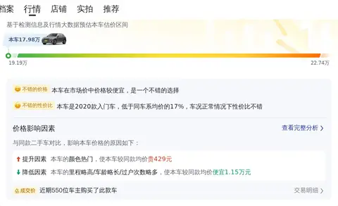 市场行情方面,根据懂车帝大数据分析,该车的二手车报价在19.2万至22.74万之间比较合理。具体价格因车辆状况等因素而异,本车17.98万的报价在市场中是一个较低的水平,具有明显的竞争优势,对于寻求高性价比二手车的消费者来说,无疑是一个极具吸引力的选择。