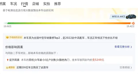 雅阁 2022款 260TURBO 幻夜·尊贵版的市场行情价是13.03万-15.42万,它的报价则是15.68万,报价高于市场行情价,价格上没有什么优势,但毕竟是去年才上牌的新车。