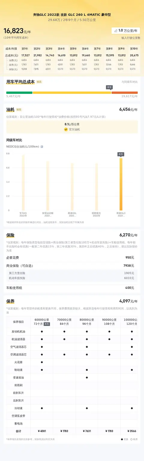 另外,这款车的10年平均用车成本大概是17488元/年,与同级车相比处于适中的水准,但是动力表现却优于96%的同级车。