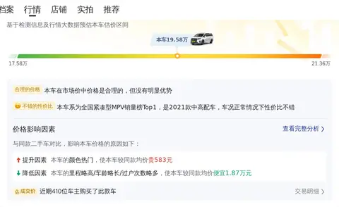 别克GL8 2021款 ES陆尊 653T 尊享型,新车含税价为37.15万,现在的二手车报价是19.58万,2020年09月首次上牌,在此期间过户1次。