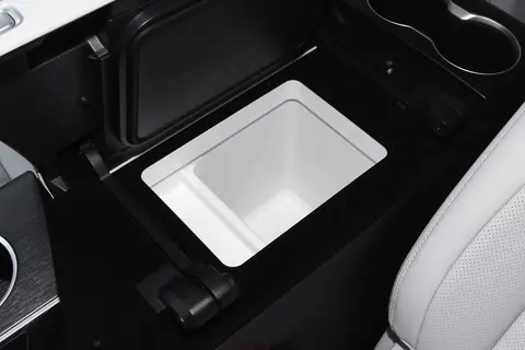 别克GL8陆尊PHEV的储物空间设计细致周到,兼顾了家庭和商务使用场景。前排中控台区域配备了无线充电功能,并设有两个杯架,便于驾驶者和乘客随手放置饮料或小物件。控制台下方采用了开放式设计,增加了额外的储物空间,方便存放钱包、手机等随身物品。车门内侧的储物袋空间充裕,可以轻松容纳水瓶和日常杂物。第二排座椅区域设有可折叠的小桌板,适合放置笔记本电脑、阅读材料或其他小物品。当第三排座椅不使用时,可以将其放倒,从而扩大行李箱容积,满足携带大件行李的出行需求。