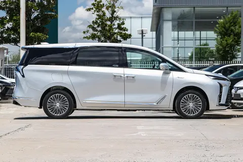 别克GL8陆尊PHEV的车侧线条设计简洁,流畅的线条从车头延伸至车尾,形成了轻微的上升走势,赋予了车辆一种动感和力量感。车顶轮廓平顺且略微倾斜,与悬浮式车顶设计相结合,增强了车身侧面的现代感。轮拱的轻微外扩设计,增加了车身的立体感。车门下方的镀铬装饰条提升了车辆的精致度。18英寸的多辐式轮圈与车身比例协调,增强了整车的和谐感。