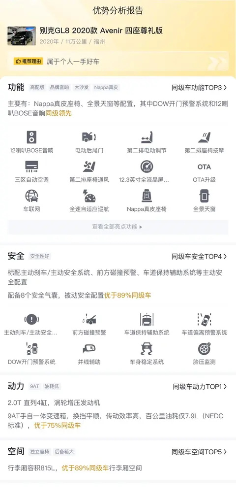 综上所述的新车含税价、用车成本、市场行情、优势分析、同款比价等数据仅供参考。在配置部分,因为二手车非标品,车辆可能会存在配置改装的情况,具体车况信息需要线下结合车辆实际情况进行综合参考。