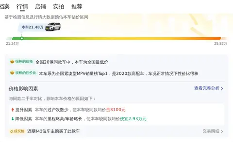 根据大数据预估显示,这辆别克GL8 2020款 Avenir 四座尊礼版的二手车报价在21.24-25.82万之间,而今天这辆车的报价为21.48万,所以价格上较全国市场处于较低的水平,是一个不错的选择,且本车是0过户,属于一手好车。