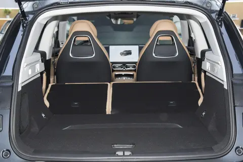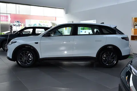 侧面造型饱满敦实,车身运用了比较柔和的线条勾勒,车顶为微溜背式设计,加上隐藏式的C柱和D柱设计,营造出比较动感的悬浮式效果。整个侧窗边条、外后视镜、轮毂、前后轮眉以及侧裙等细节,都进行了熏黑处理,搭配隐藏式门把手、无框车门等设计,带来更加浓郁的时尚运动化气息。