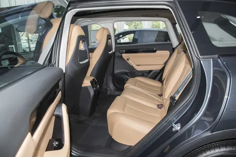 车尾造型比较饱满敦实,配有高位扰流板、熏黑的贯穿式尾灯非常粗壮,内部为极简的纤细灯组,点亮之后很有科技感和辨识度。底部采用大面积的黑化装饰件包覆,展现出更加大气时尚的视觉效果。