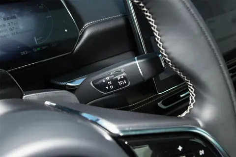 车内为5座布局,座椅为皮质面料包裹,表面带有打孔处理,乘坐舒适不闷汗。前排座椅支持电动调节,后排可按40:60的比例放倒。后备箱的容积为578L,必要的时候可以将后排座椅放倒,得到一个1273L的空间。掀背尾门以及1025mm的大开口设计使得后备箱更加方便使用,后备箱盖板下方还设计有一个额外的储物槽,可以用来放置一些小件或零碎的物品,如放电枪等。乘坐空间体验方面,笔者身高170cm,入座主驾驶一侧,将座椅调节至适合驾驶的位置后,头部有1拳4指的样子,再来到后排座椅上,头部有1拳2指,腿部空间约3拳。还有不可开启全景天窗,车内比较通透。