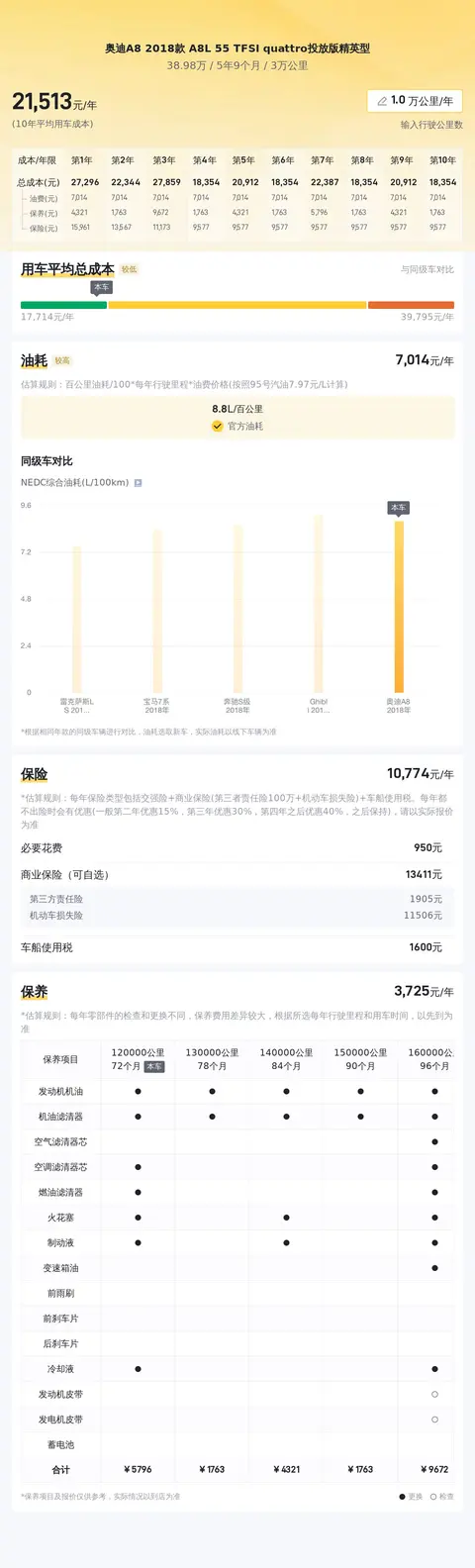 综上所述,这辆奥迪A8 2018款 A8L 55 TFSI quattro荣誉投放版精英型作为一款二手豪华轿车,在市场行情、用车成本、优劣势分析等方面均表现出了其独特的价值和吸引力。购车者可以根据个人需求、预算以及对车辆性能、舒适性和维护成本的考量来做出最终的购买决策。希望本文能够为潜在购车者提供有价值的参考信息,助您选购到满意的车型。