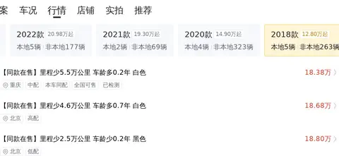 市场行情显示,这款车型的二手车价格大约在19万至23万之间。实际售价受车辆状况、行驶里程及维护记录等因素影响。购车时建议与卖家详细沟通车辆情况,并参考市场行情进行合理评估。
