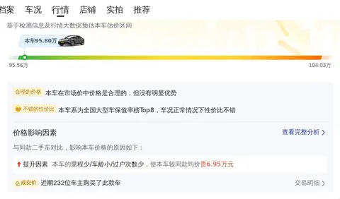 综上所述的新车含税价、用车成本、市场行情、优势分析、同款比价等数据仅供参考。在配置部分,因为二手车非标品,车辆可能会存在配置改装的情况,具体车况信息需要线下结合车辆实际情况进行综合参考。