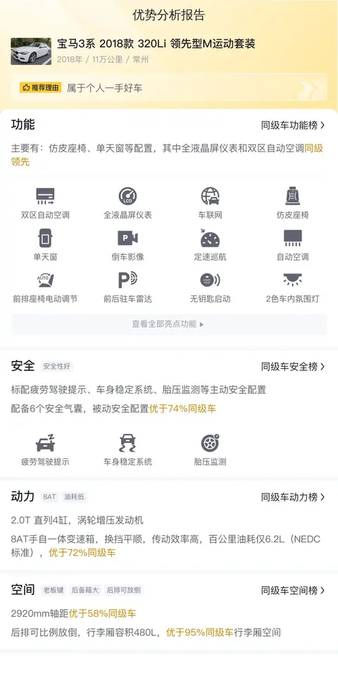 综上所述的新车含税价、用车成本、市场行情、优势分析、同款比价等数据仅供参考。在配置部分,因为二手车非标品,车辆可能会存在配置改装的情况,具体车况信息需要线下结合车辆实际情况进行综合参考。