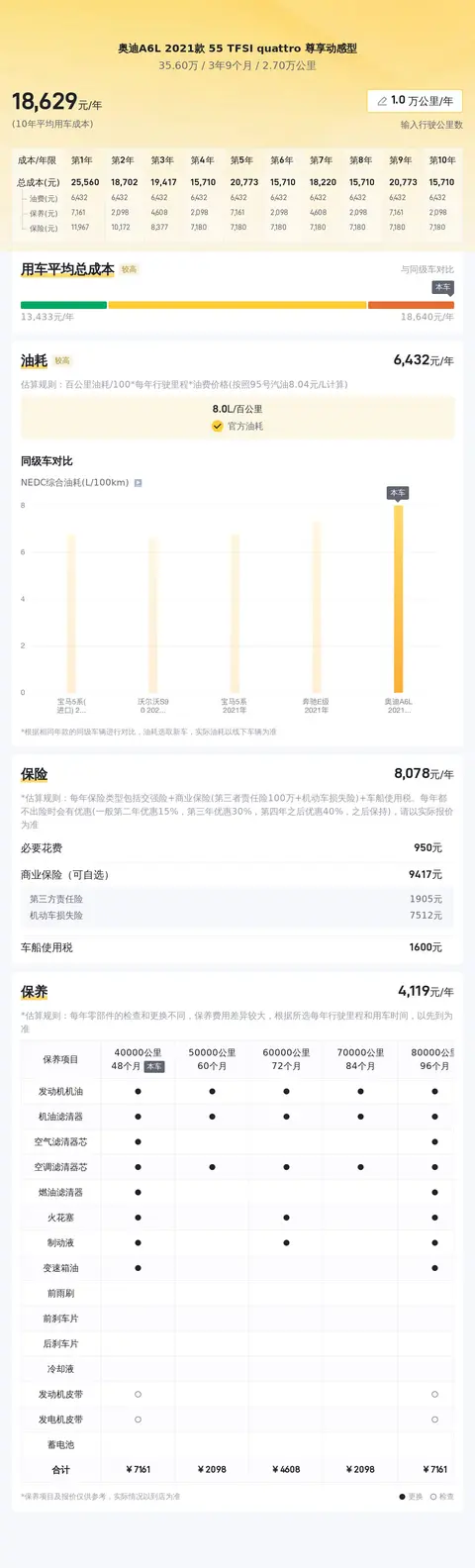 买车之前,大家都想了解一下这款车的市场行情和用车成本,心里才有底。目前这款车的二手车行情大致在28.35万至34.54万之间。根据估算,这辆车的年均综合用车成本在1.9万元左右。