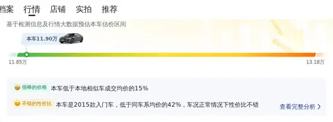 奥迪A6L 2015款 TFSI 百万纪念智领型,新车含税价为43.48万,现在的二手车报价是11.9万,2015年12月首次上牌,在此期间过户1次。