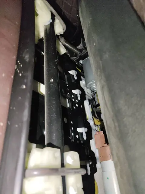 虽然通过了泡水检测,但在主驾座椅滑轨、副驾座椅滑轨处有拆卸痕迹,不过可以放心,这只是瑕疵项,因为如果真是泡水车,那么肯定会显示为泡水车检测不通过。